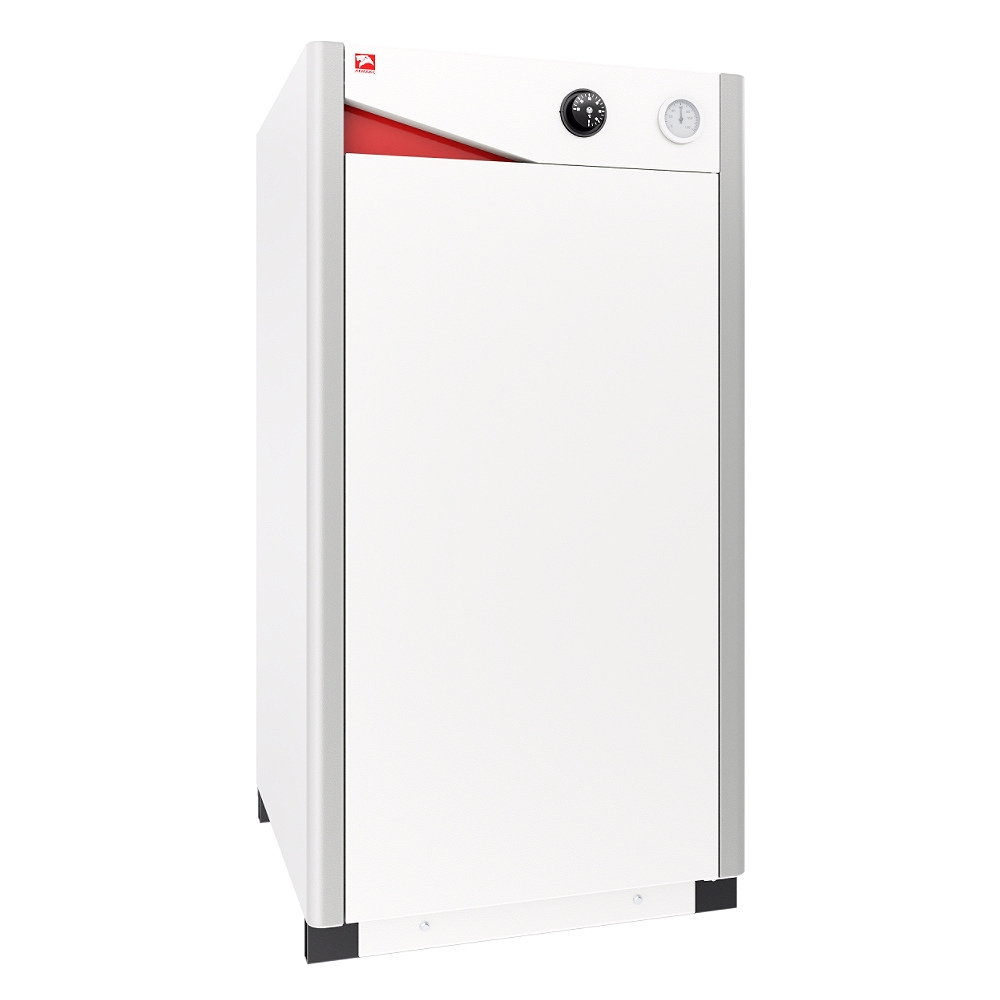 Котел серии «Гидропоинт» с открытой камерой сгорания мощностью 40 кВт может работать в закрытой или открытой системе отопления с рабочим давлением до 3 атм.