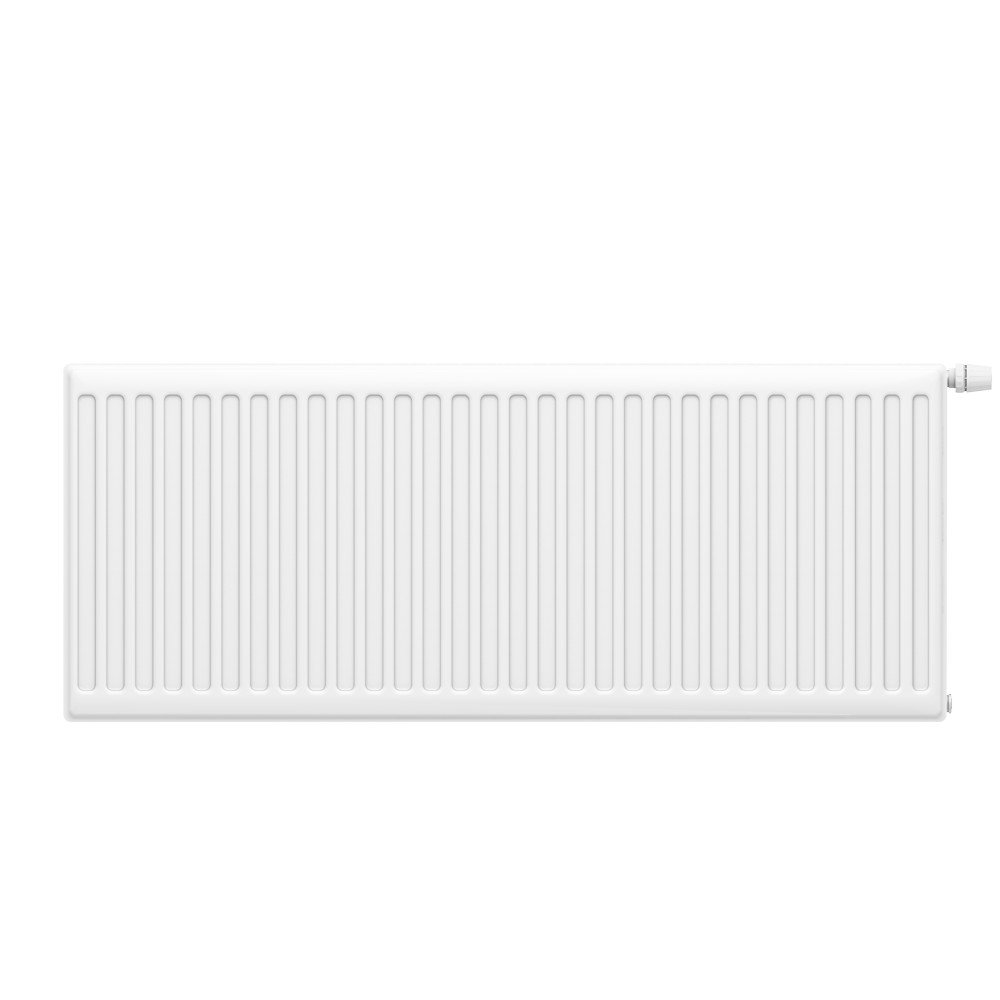 Теплоноситель поступает в отопительную панель через верхнее отверстие и благодаря естественному давлению равномерно распределяется в радиаторе. Эффективность радиатора длиной более 100 мм может быть увеличена с помощью перекрестного подключения – способа, при котором теплоноситель выводится через отверстие в противоположном от входа нижнем углу.